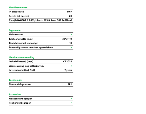 De Doro 3500 is een kleine alarmknop waarmee gebruikers van een compatibele Doro mobiele telefoon eenvoudig een noodoproep kunnen laten uitgaan in een noodsituatie. De knop wordt om de pols of nek gedragen (inclusief polsband en halskoord) en vormt een perfecte aanvulling op de Doro-alarmapplicatie en Response by Doro.